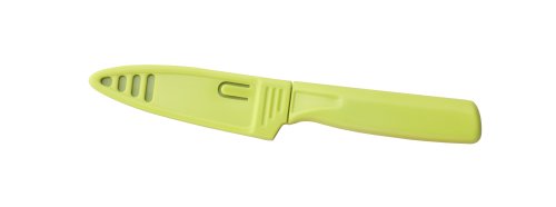 Kuhn Rikon Paring Knife in eye-popping Green. Under all that color is a 4-inch carbon steel blade sheathed in nonstick color coating. Slices slide right off the blade, making each cut easier and neater. Plastic Sheath protects the blade when traveling or for storage.SAVE NOW on the special offers below!